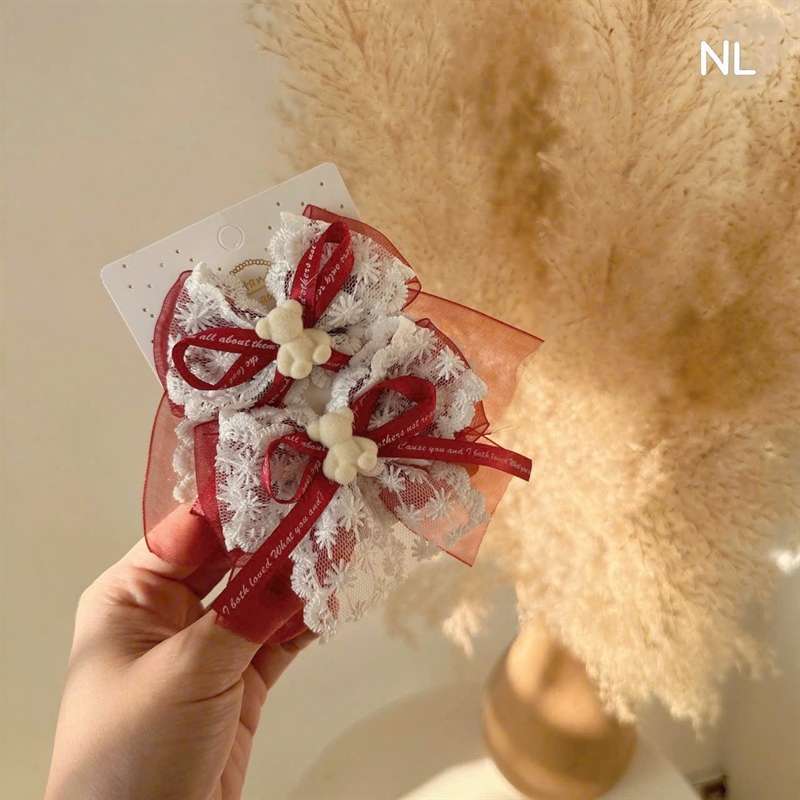 KẸP NƠ REN IN CHỮ CHAMR GẤU