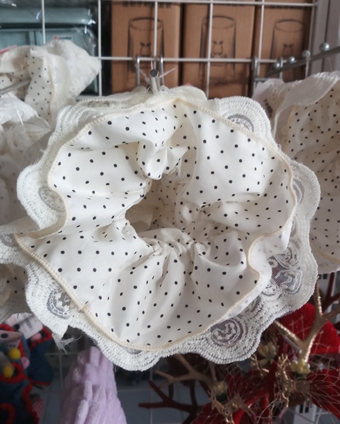 SCRUNCHIES 4 LỚP TRẮNG REN CHẤM BI