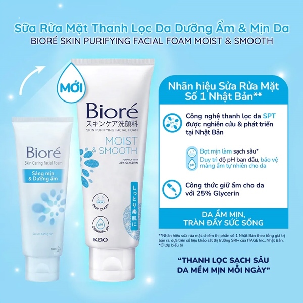 Sữa rửa mặt Biore sáng mịn đầy sức SỐNG100G